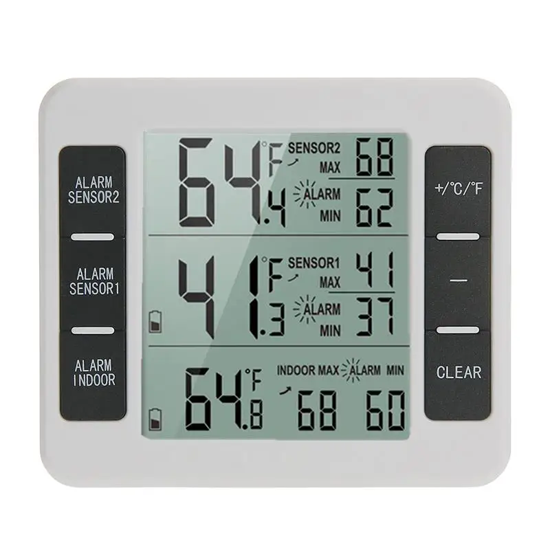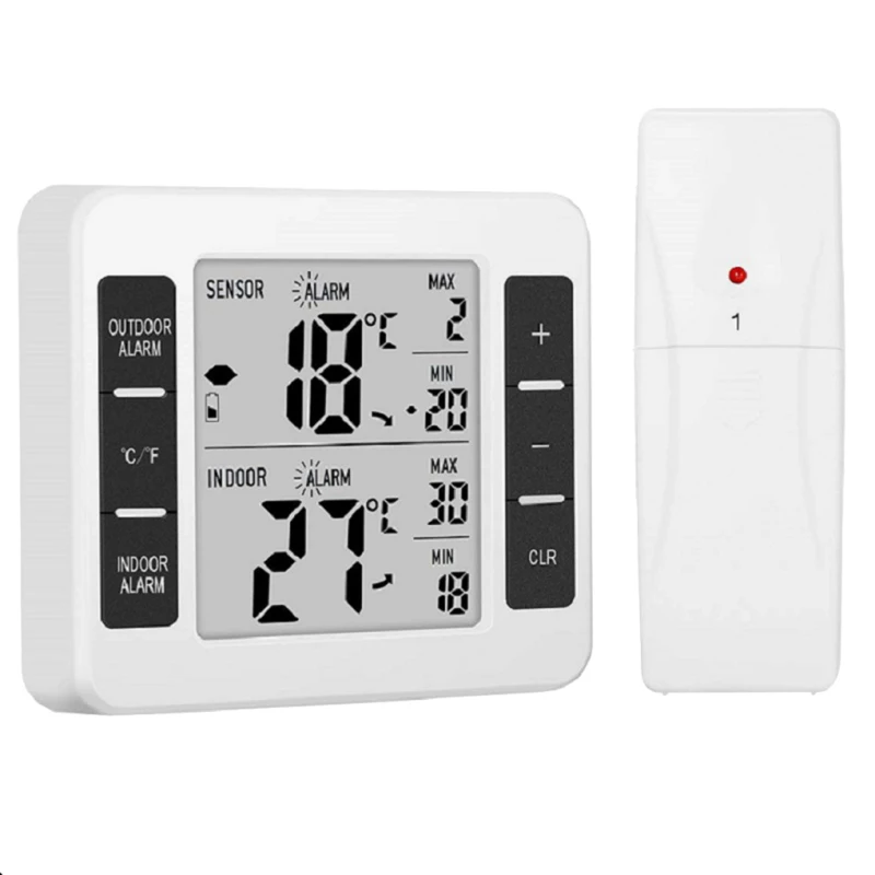 Диапазон температуры беспроводного термометра в холодильнике от 0 до 60 °C в помещении, диапазон температур от-40 °C до 60 °C на открытом воздухе, подходит для использования в помещении и на открытом воздухе.