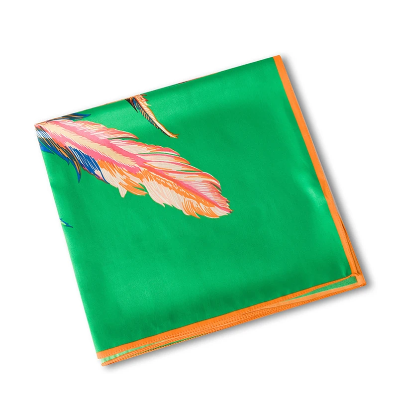 Размер продукта: 130 см x 130 смЦвет продукта: как показано на рисункеИспользование продукта: многофункциональныйШелковый шарф имеет мягкую текстуру и приятен на ощупь.