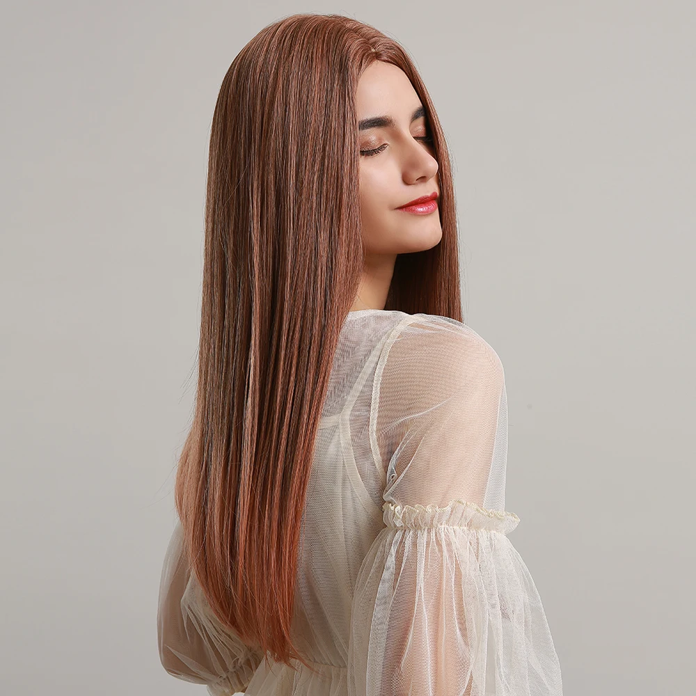 Длинные прямые синтетические парики HENRY MARGU, коричневый, оранжевый, красный парик Омбре для женщин, средняя часть, вечерние парики для косплея, термостойкие