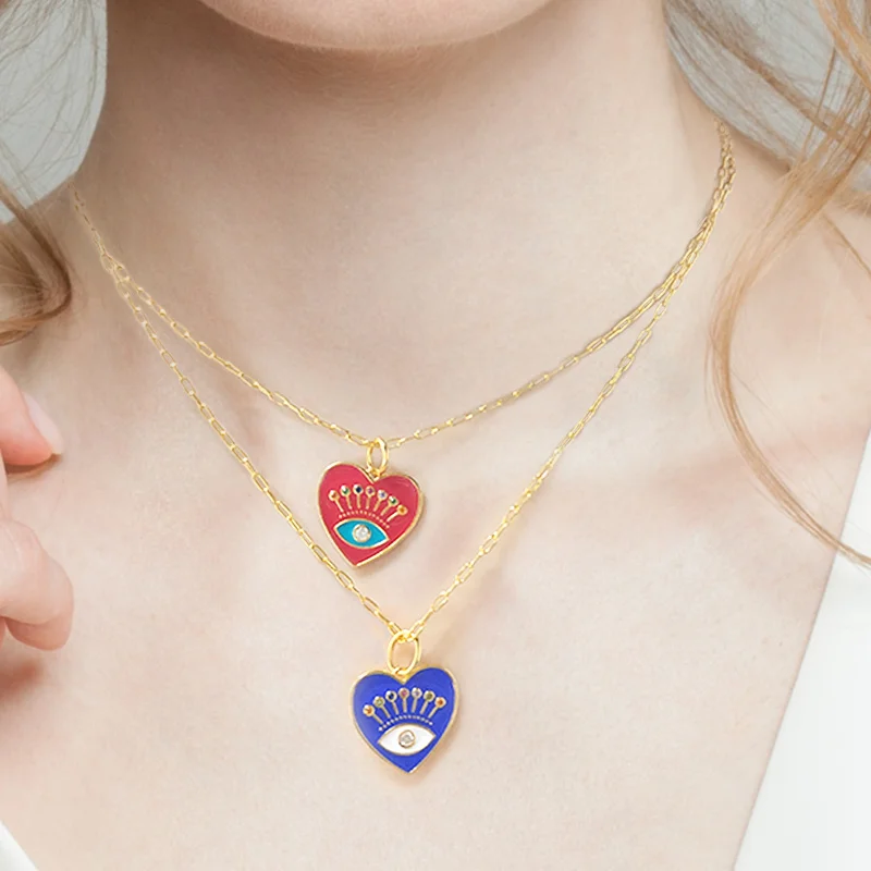 Aide 925 стерлингового серебра Цветной эмали с клипсами Дурной глаз с узором сердце; Кулон Цепочки и ожерелья Циркон Палм красивые полусапожки с толстыми цепи Цепочки и ожерелья