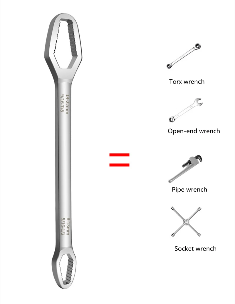 Промышленный многофункциональный ключ Torx, многоцелевой двухсторонний самозатягивающийся гаечный ключ 8-22