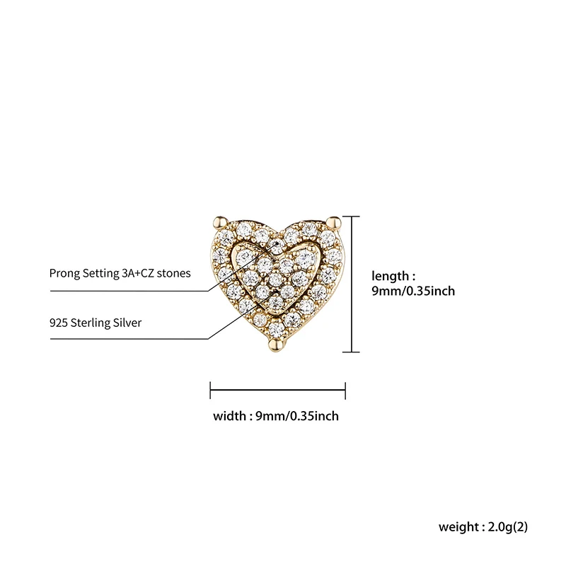 1 пара носков в стиле хип-хоп с мелким цирконием AAA камнем Bling лед из ювелирных изделий серьги в виде сердца, для мужчин и женщин, унисекс, реперские кепки ювелирных изделий цвета: золотистый, серебристый Цвет
