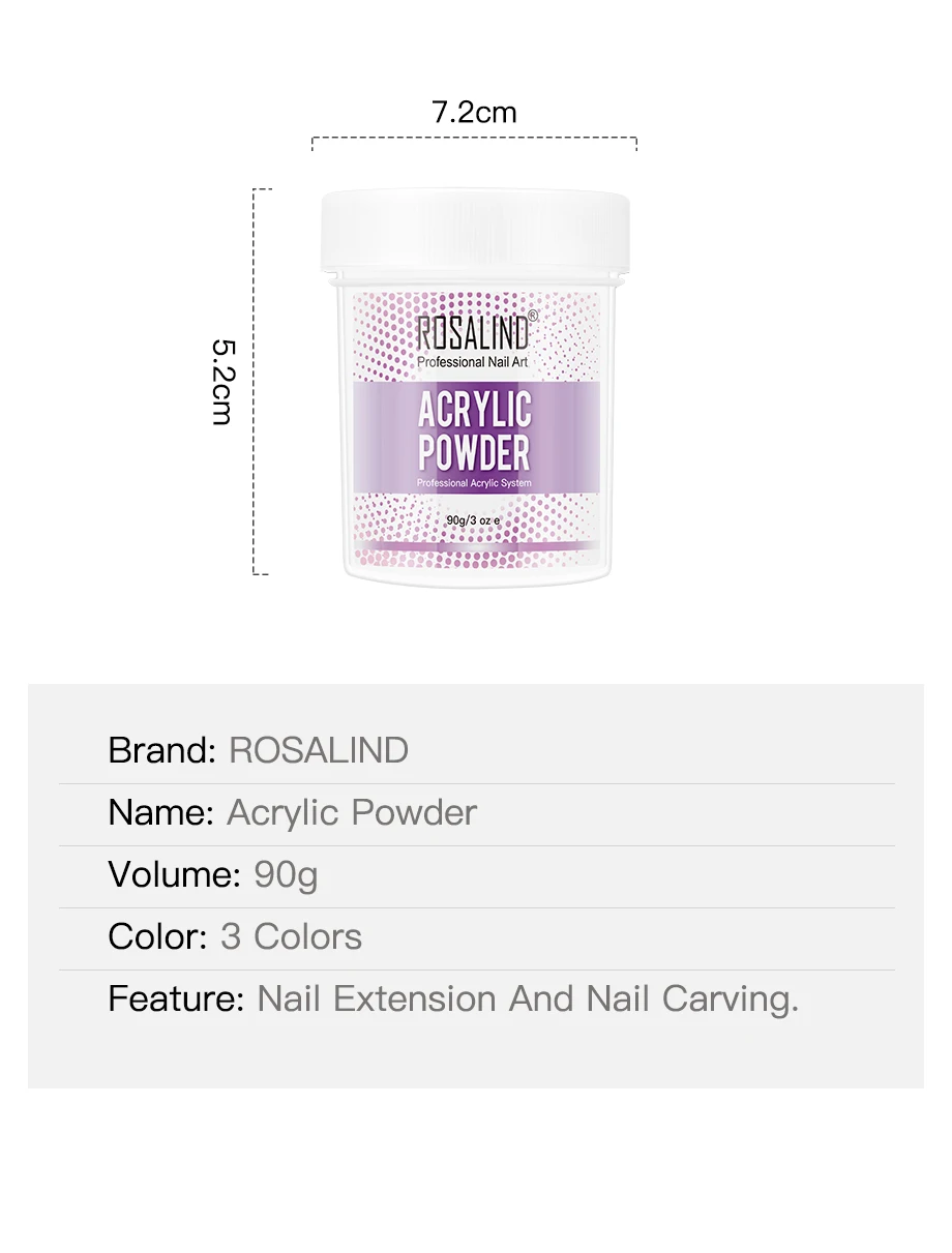 Акриловая пудра ROSALIND, 3 цвета, для наращивания ногтей, 1030 г, профессиональный набор акриловых ногтей, кристалл, 3D декор для ногтей
