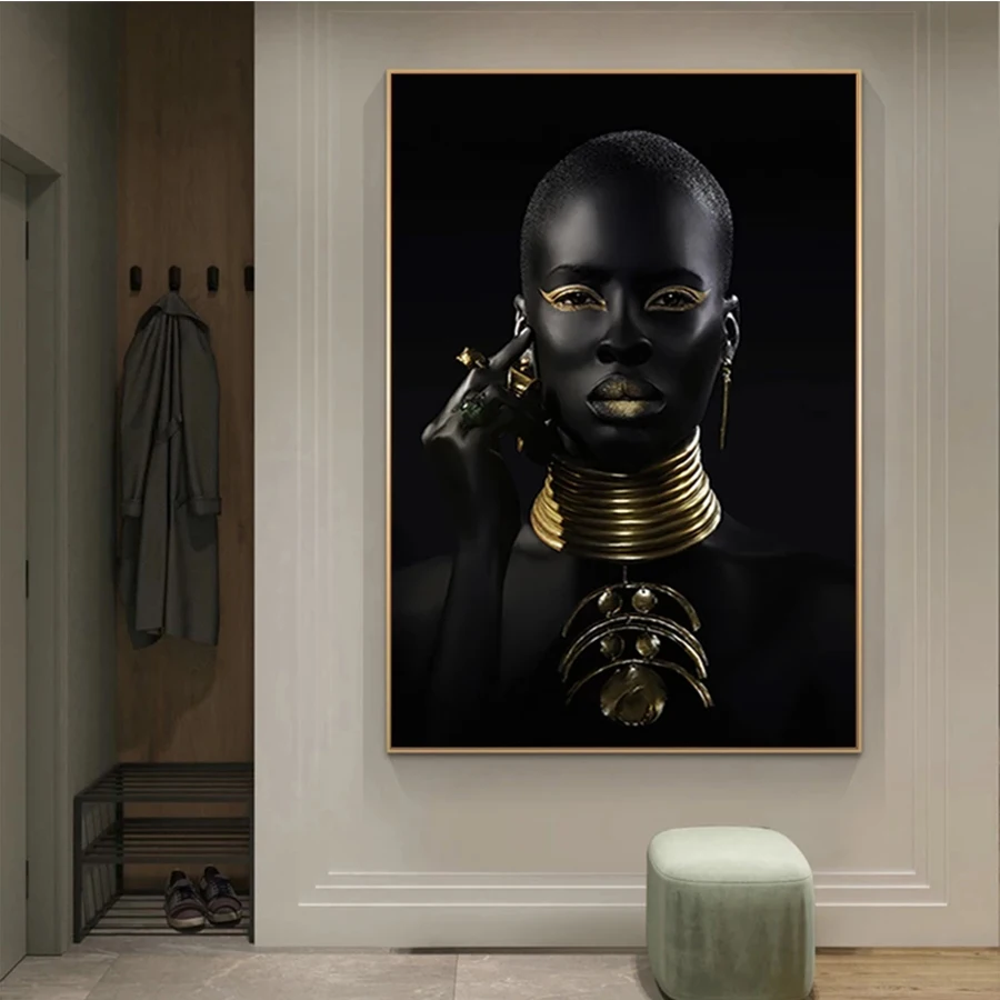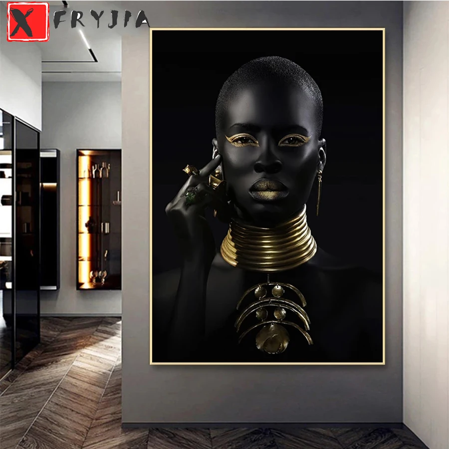 Алмазная живопись, современное искусство, африканская мода, черная женщина, золотые украшения, 5d Вышивка, Алмазная мозаика, украшение для вышивки крестом