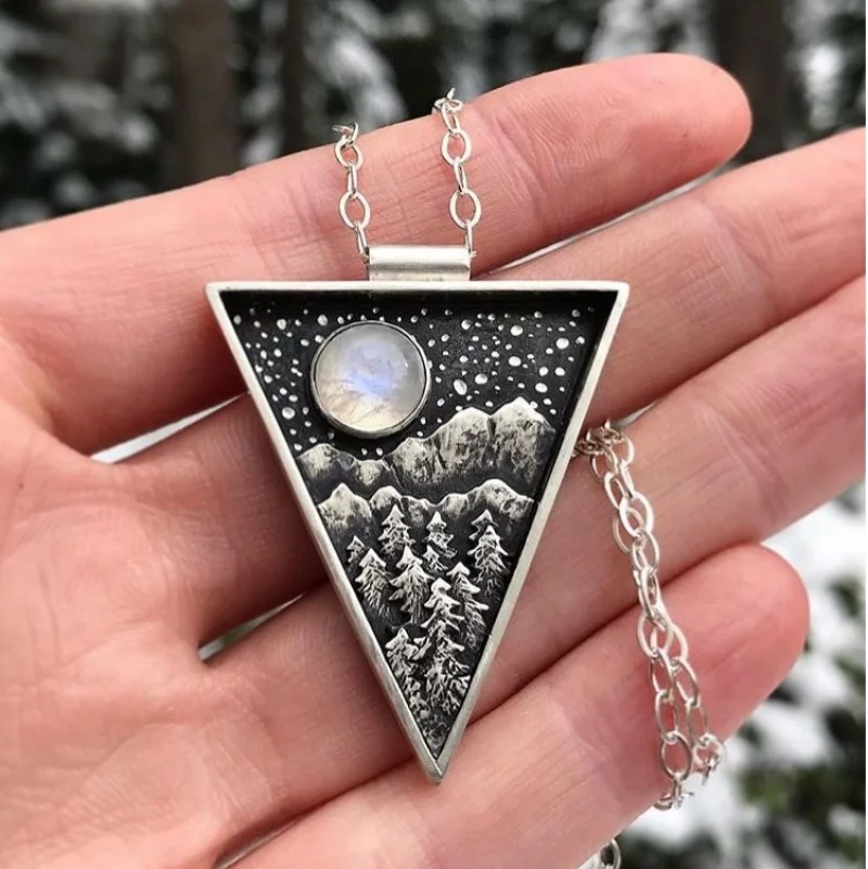 Винтажное колье с треугольным лунным лесом и лунным камнем, женская модная подвеска, еврей...