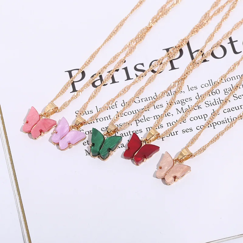Женская цепочка на шею с разноцветными бабочками и акриловыми кристаллами, милое романтичное женское ожерелье...