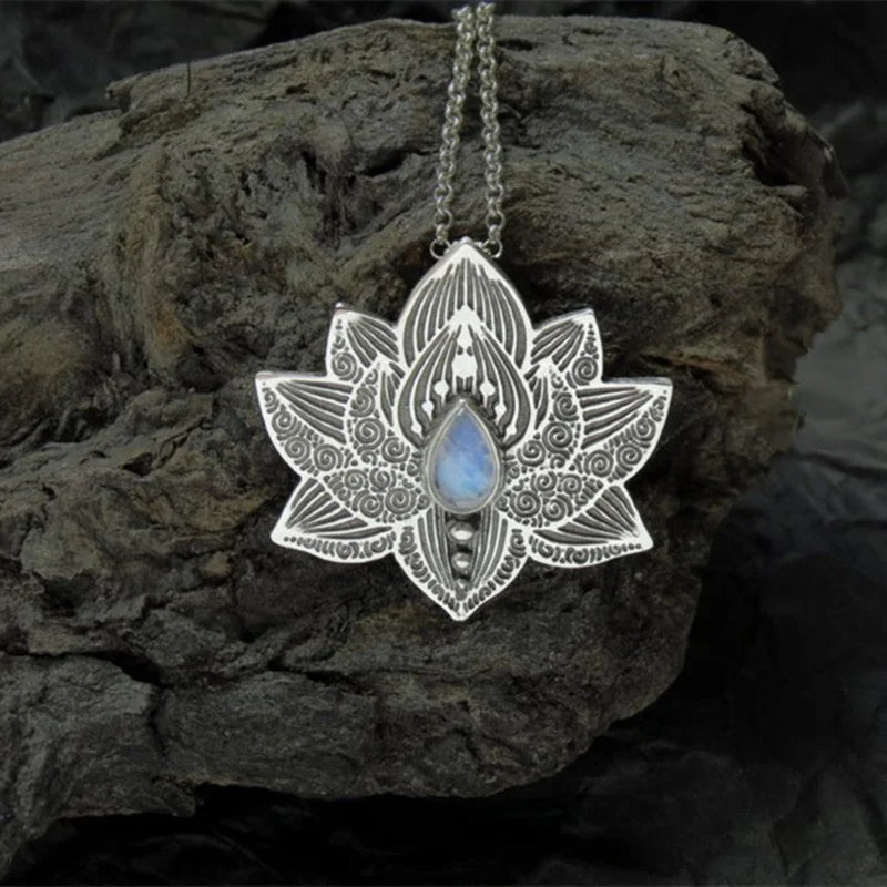 Винтажные Лотос инкрустированные богемные лунный камень женские подвески, ожерелья Модные...