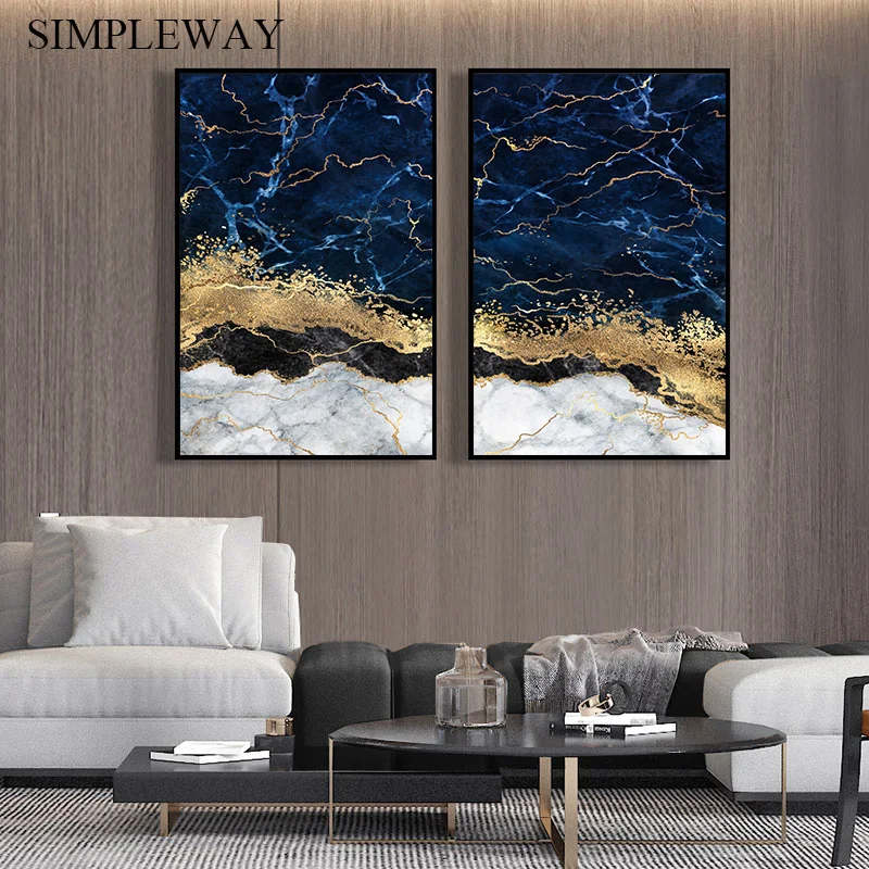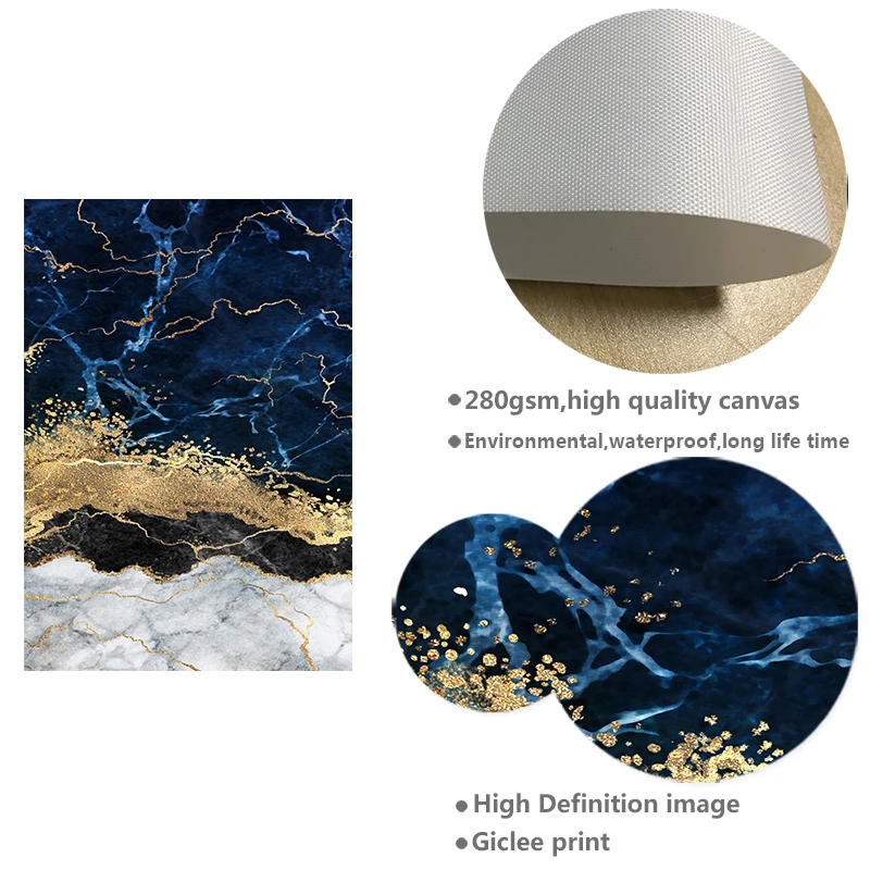 Роскошный постер на холсте в скандинавском стиле, золотистый, синий...