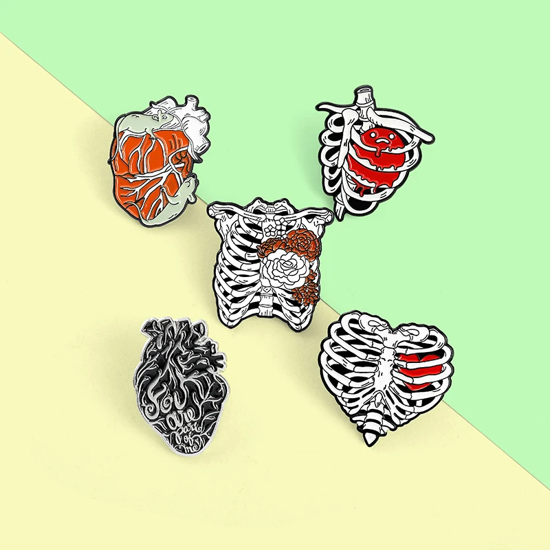 Эмалевые булавки в форме сердца, скелета, анатомические броши для в...