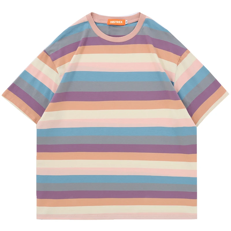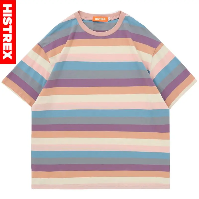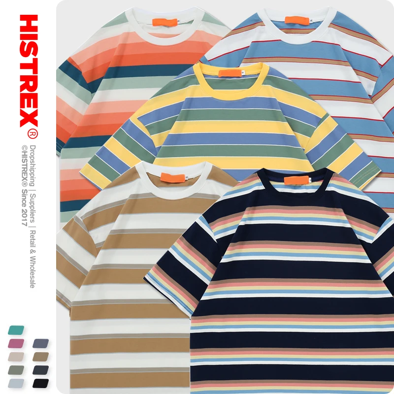 HISTREX Полосатая футболка для женщин и мужчин, унисекс, 100% хлопок, 50 цветов, футболка большого размера, летняя винтажная футболка, лучший бренд, 200 г, женская и мужская футболка