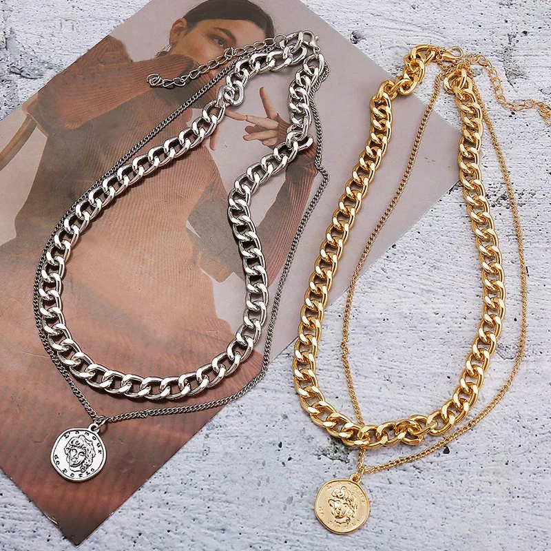 Винтаж с многослойным покрытием с монетками и цепочкой колье Цепочки и ожерелья вечерние ювелирные изделия в виде толстой цепочки Цепочки и ожерелья, украшения для женщин и девочек 2021 новая тенденция