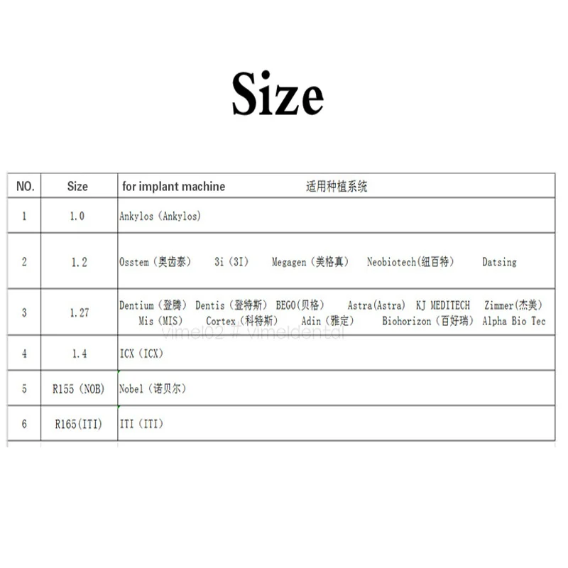1 гаечный ключ + 12 отверток;Динамометрический ключ: 10-70 см;Короткие отвертки: 8,5 мм;Длинные отвертки: 13,5 мм;Медицинская нержавеющая сталь;100% высокое качество;135 °C Автоклавный, коробка также может быть стерилизована.