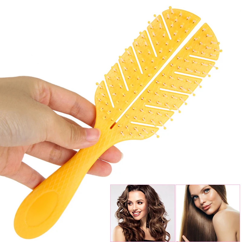 1 шт. желтый Чистящая Щетка для волос щетка для волос Массажная расческа листье-образные салон парикмахерские инструменты для создания объема для уменьшения выпадения волос или поломки