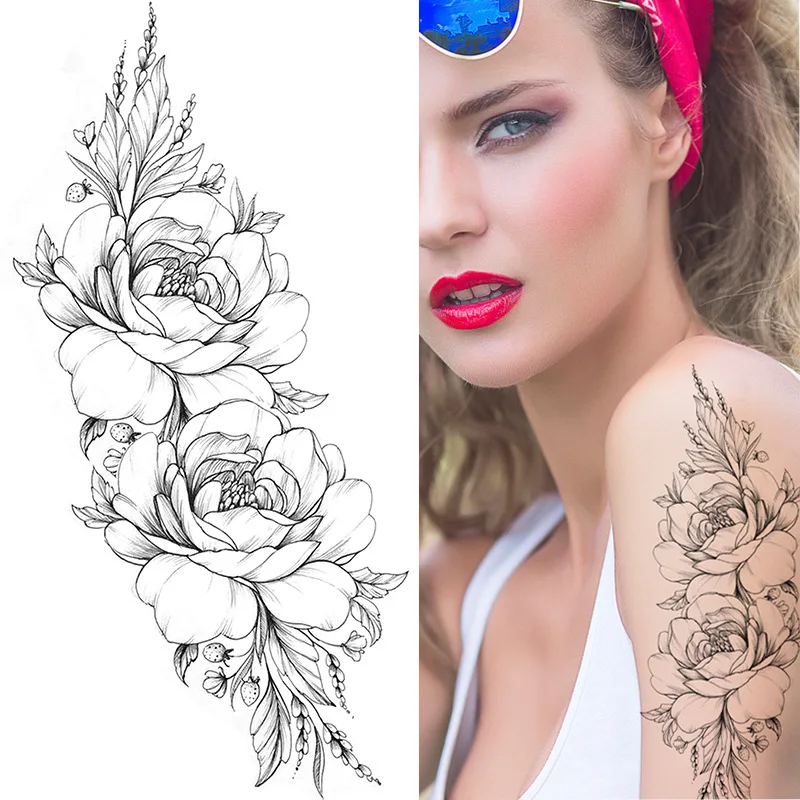 Эскизные наклейки-тату с цветами, черно-белые розы, полноразмерные ...