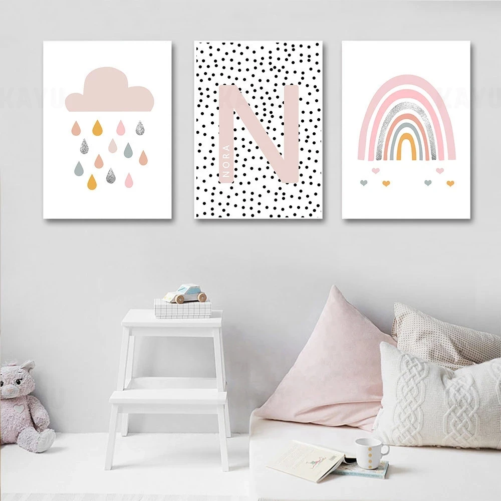 Настенный плакат для девочек с именем на заказ, холст с принтом в виде розового облака и радуги, Постер в скандинавском стиле для детской комнаты, украшение для детской комнаты