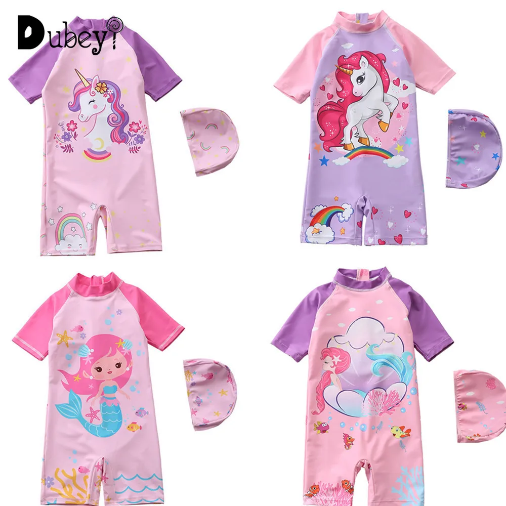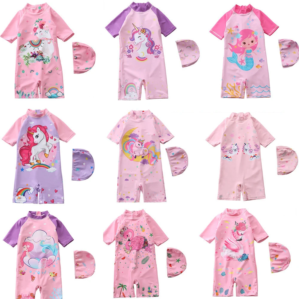 Купальный костюм для маленьких девочек, 1 шт., купальник для малышей, детская одежда для плавания, колготки, купальник для маленьких девочек с единорогом, Цельный купальник для девочек