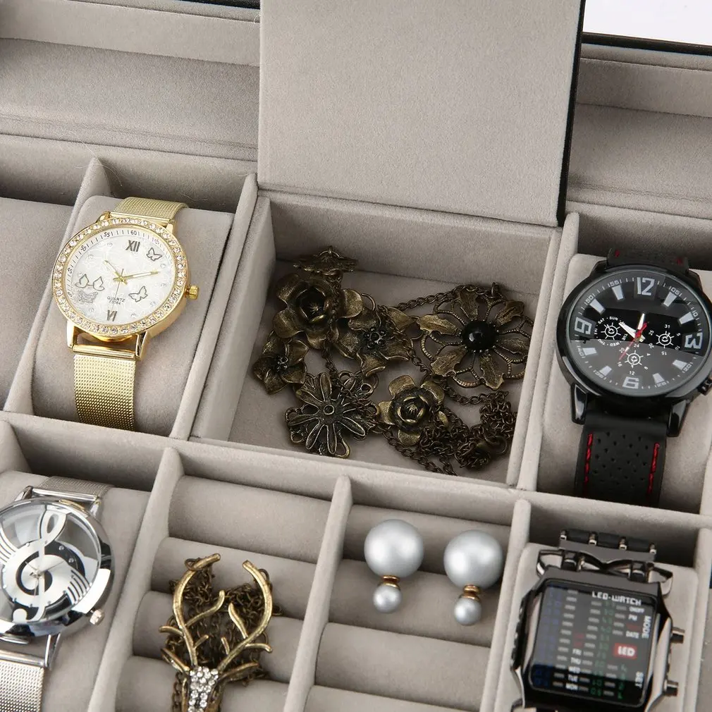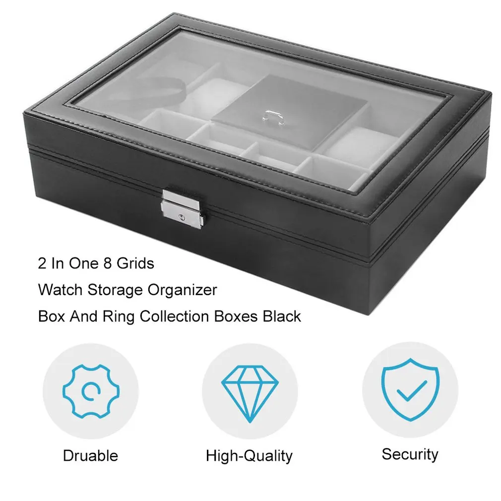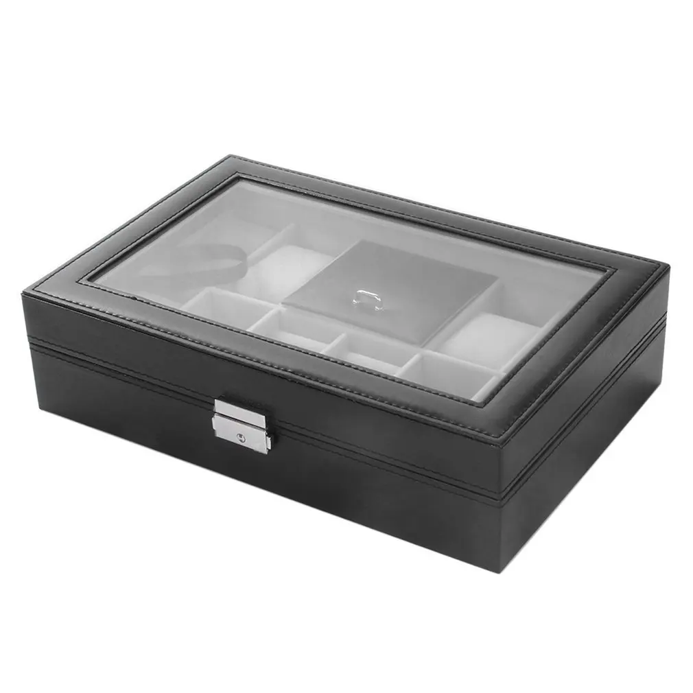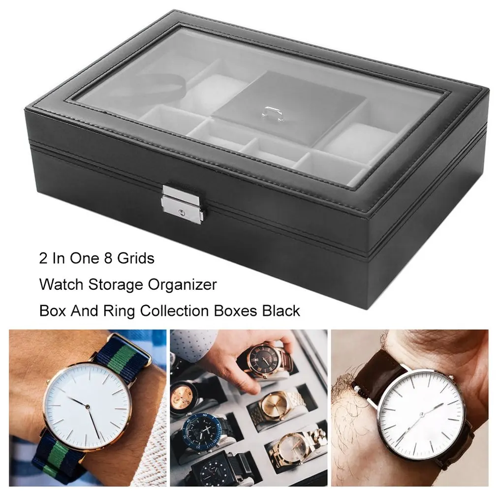 Черный 2 в одном 8 сеток + 3 смешанные сетки кожаным ремешком чехол для хранения Организатор Box Роскошные ювелирные изделия кольцо Дисплей коробки для часов