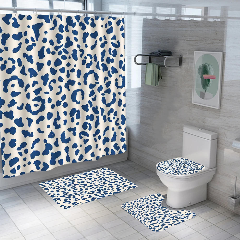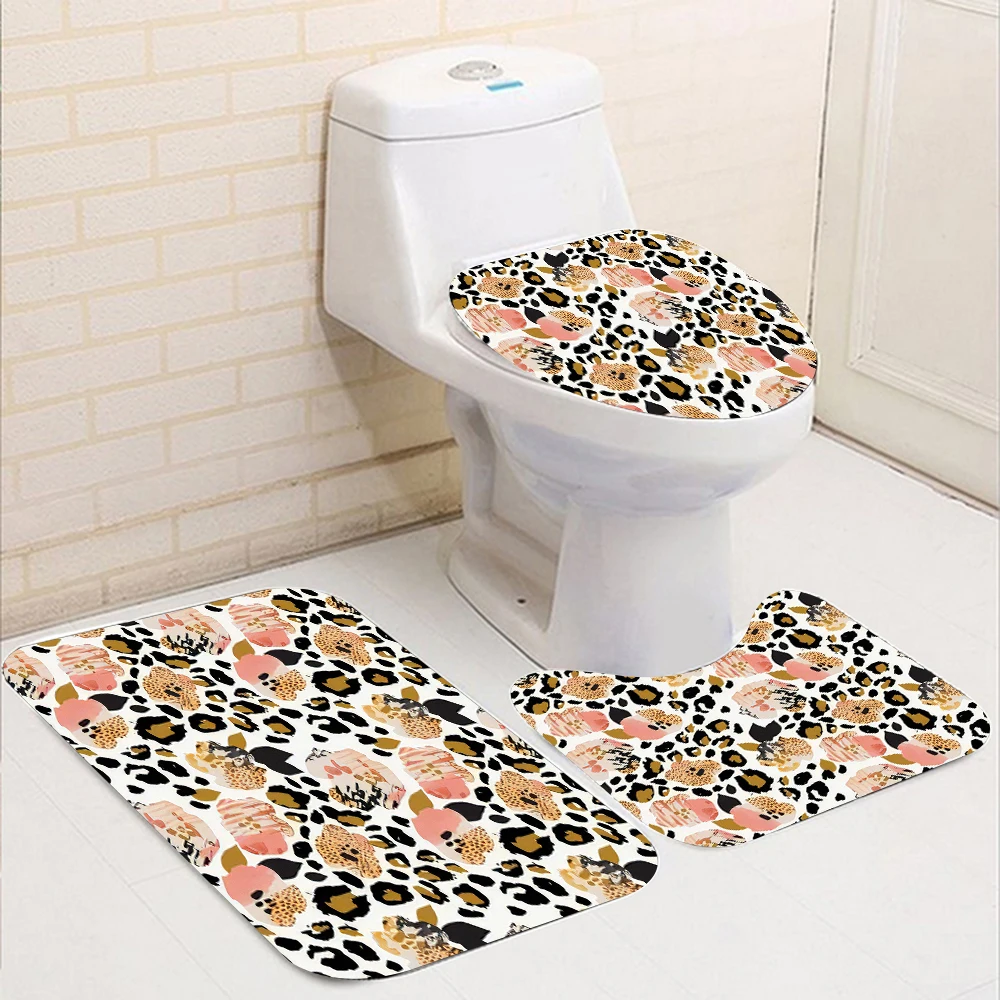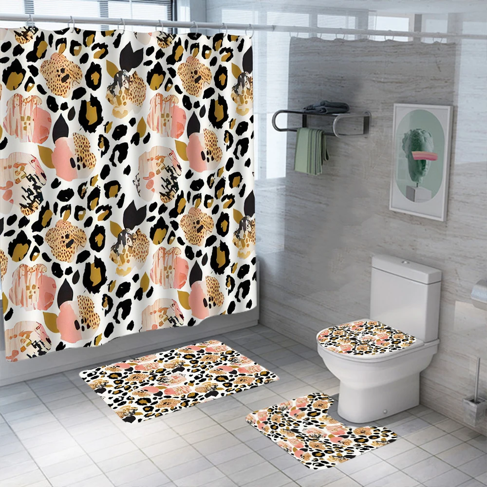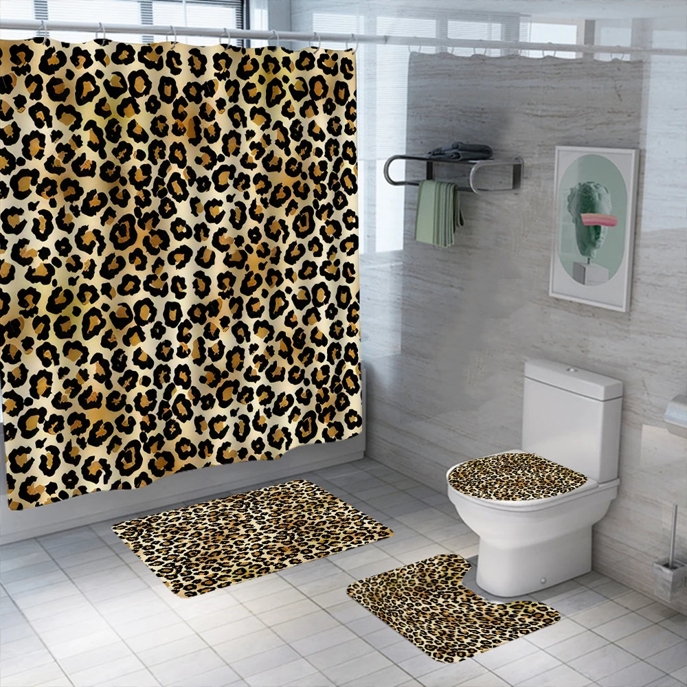 3D с леопардовым принтом душ Шторы комплект Водонепроницаемый подкладка из полиэфира, которую можно стирать Ванна Шторы Противоскользящие коврики крышка для унитаза коврик для ванной комнаты