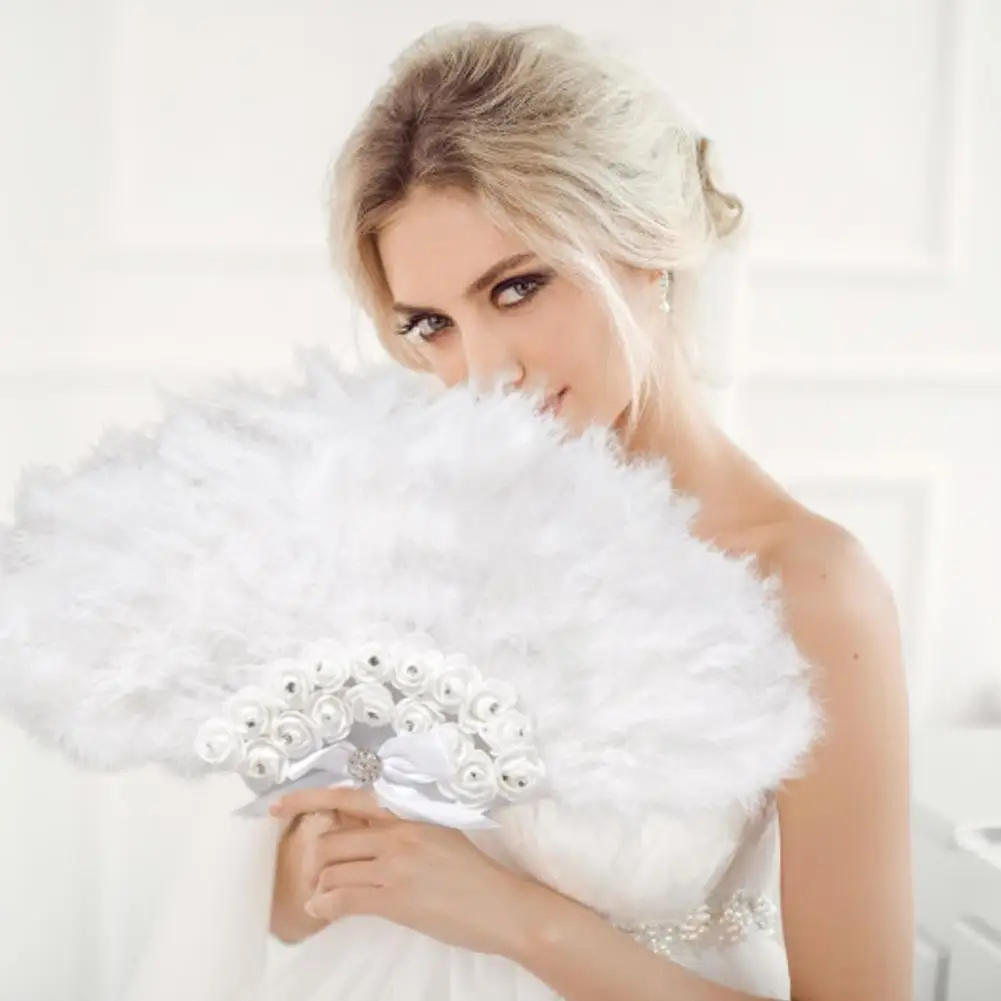 Свадебный веер с перьями для невесты, нескладные ручные вееры, прин...