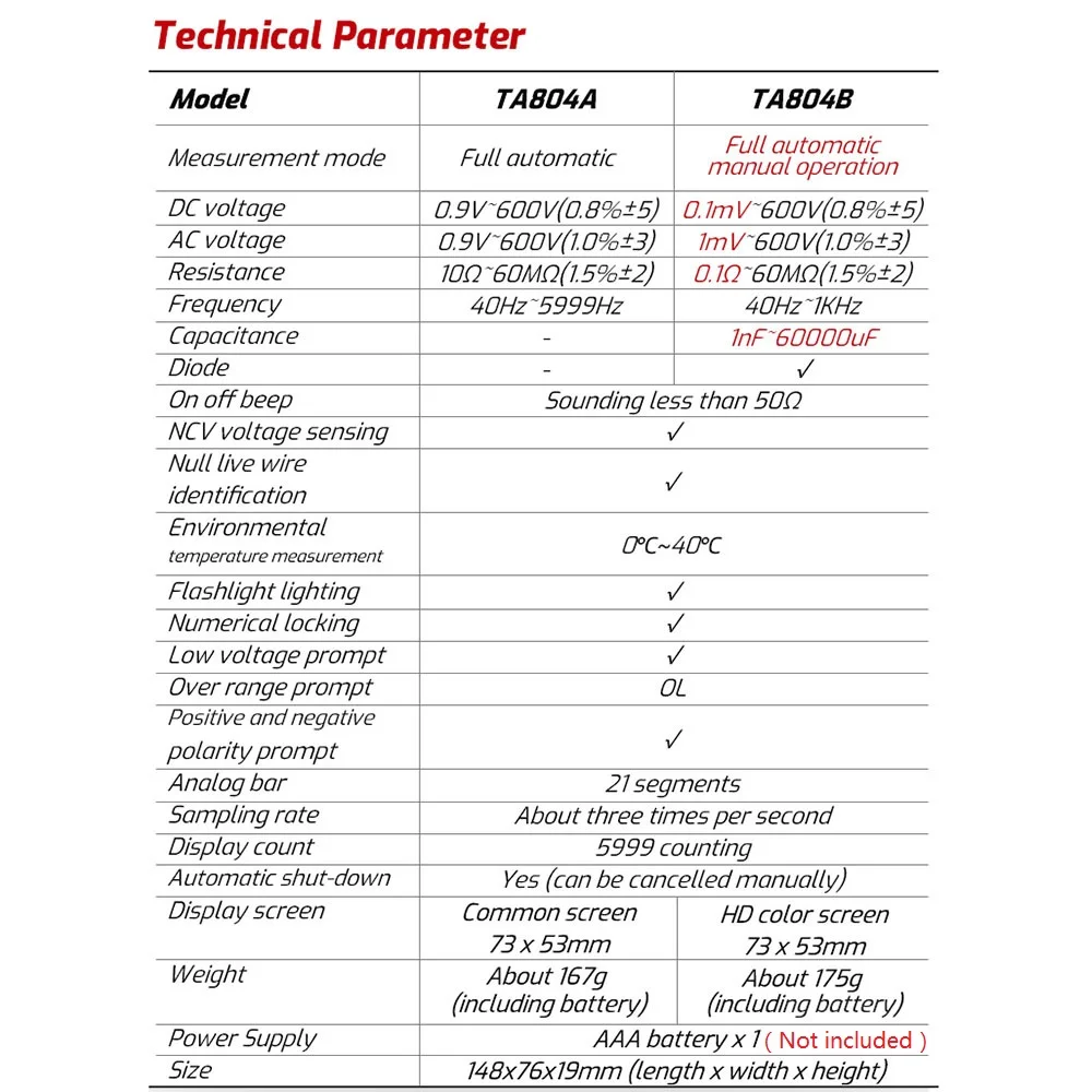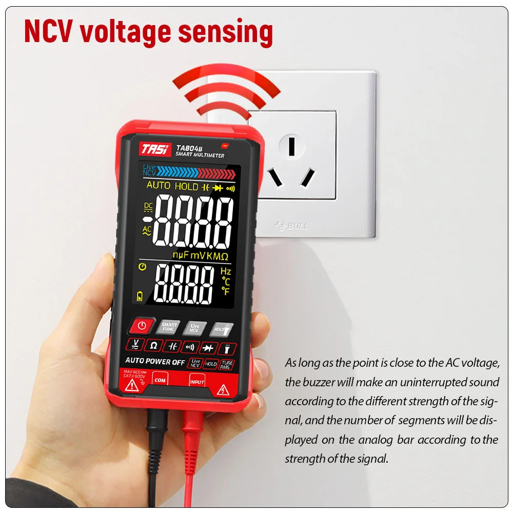 Цифровой мультиметр TASI TA804B, профессиональный автоматический тестер, Ультратонкий Интеллектуальный вольтметр с функцией True RMS и бесконтактным индикатором напряжения