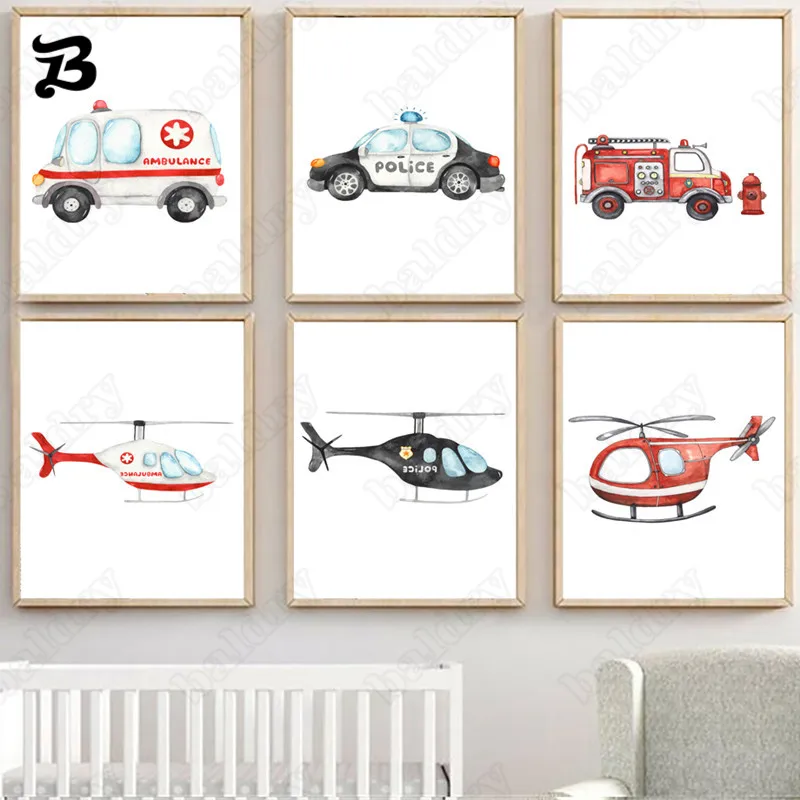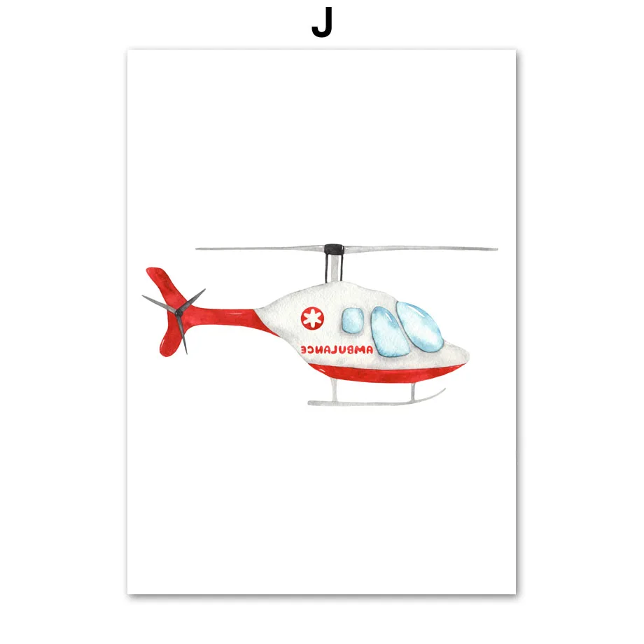 Плакат на холсте, с изображением вертолета, машины скорой помощи
