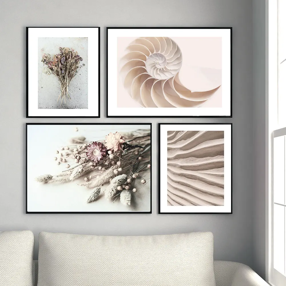 Плакат с букетом, песочные волны, Картина на холсте, Скандинавская раковина, картина для гостиной, домашний декор