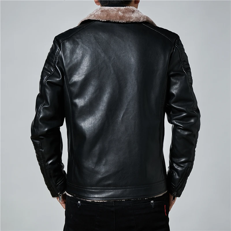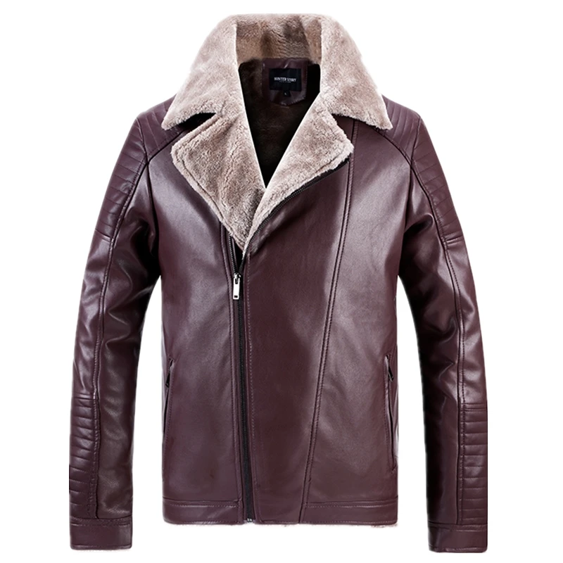 Куртка AIOPESON мужская с флисовой подкладкой, модная повседневная приталенная теплая мотоциклетная куртка из искусственной кожи, мужская зимняя куртка с меховым воротником