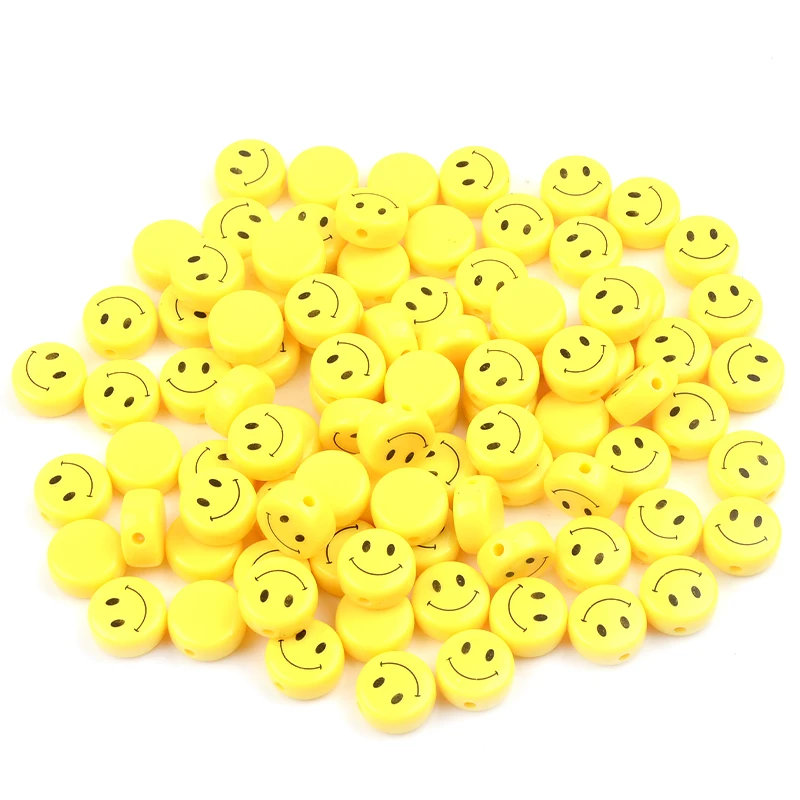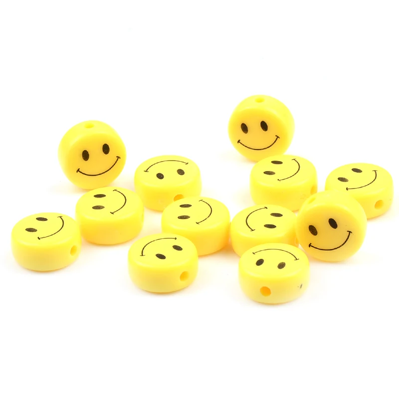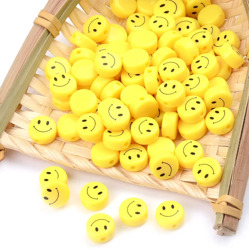 Плоские круглые жёлтые бусины с улыбающимся лицом, 10 мм, 12 мм, бусины для женщин, бисер с улыбающимся лицом для изготовления ювелирных изделий, браслетов, аксессуары сделай сам, новинка 2021