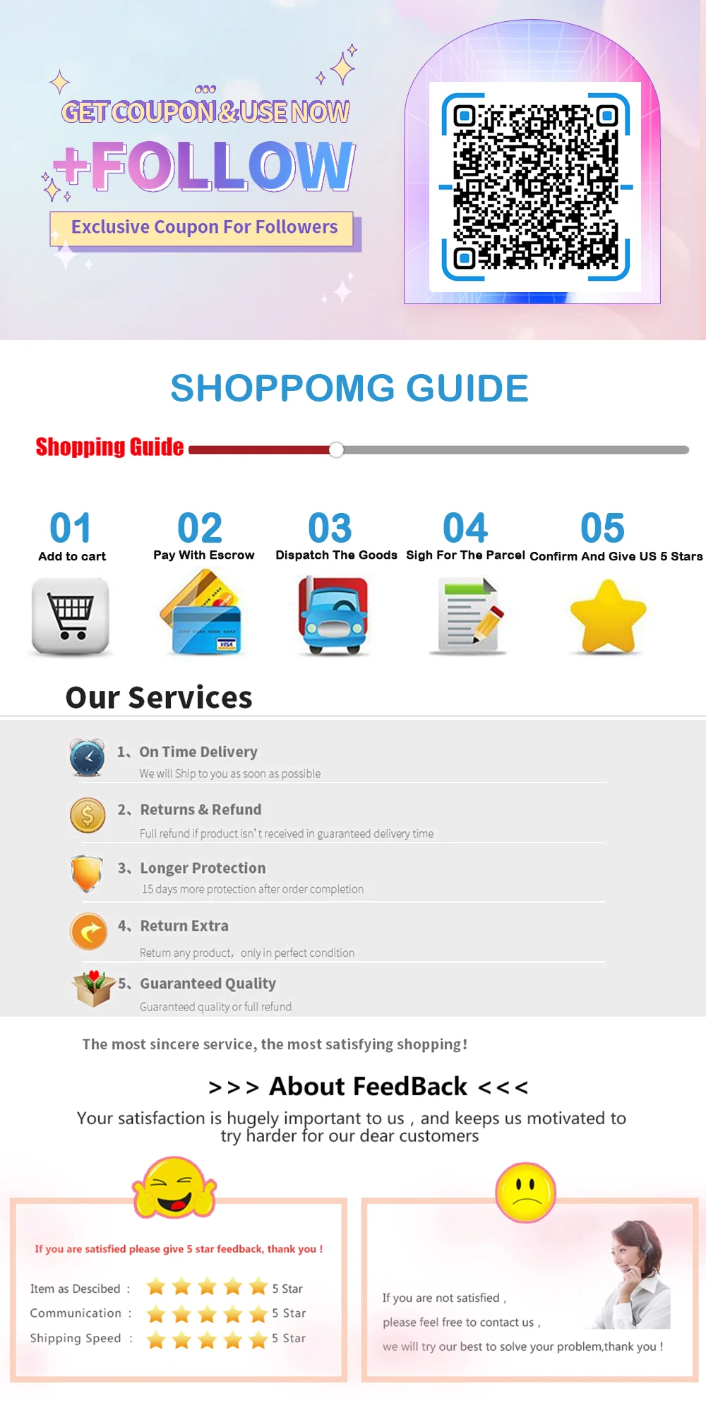 1. Быстрая доставка 2-5 дней + своевременный теплый ответ + положительное отношение;