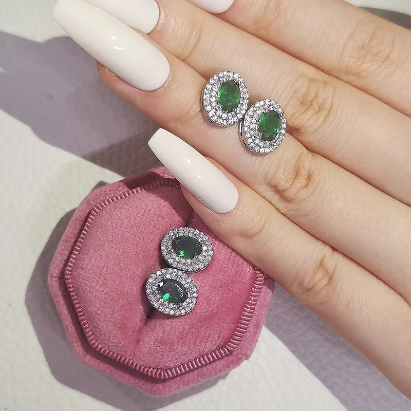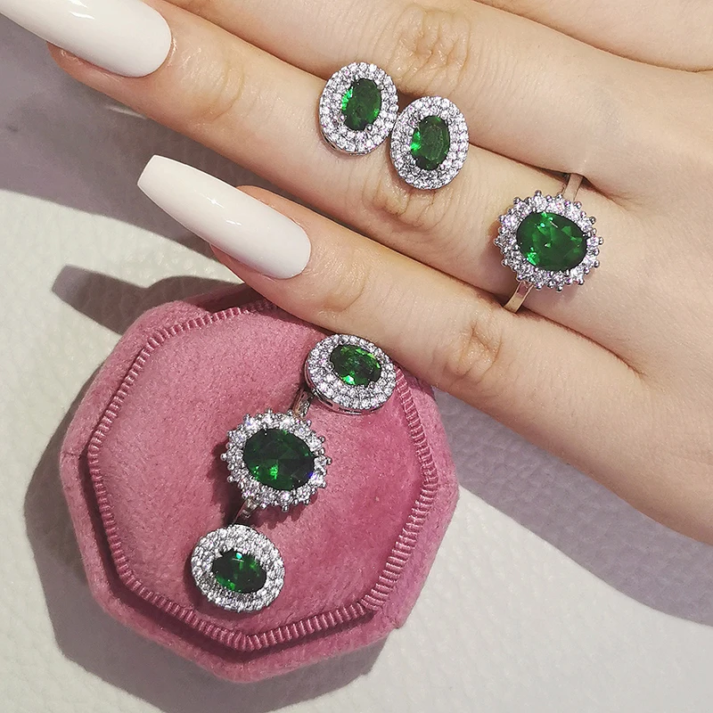2 шт. в лоте; 925 стерлингового серебра комплект ювелирных изделий, кольцо для помолвки, круглые серьги-гвоздики, отличный подарок на свадьбу, Рождество подарок ко Дню J4944-green
