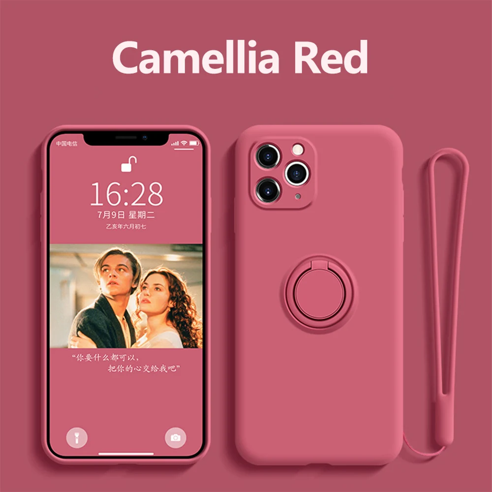 Чехол для iPhone 12, чехол с кольцом-держателем и ремешком, силикон...