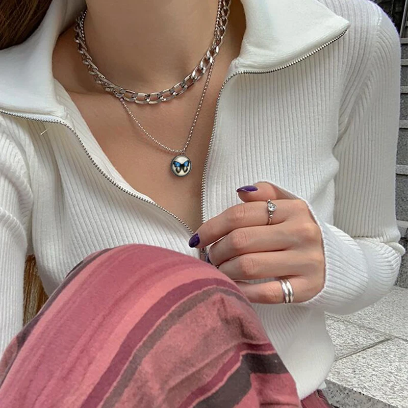 Корейское многослойное ожерелье LETAPI с подвеской-бабочкой и монет...