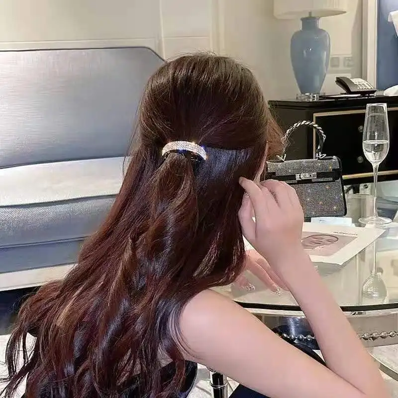 Заколка для волос женская, со стразами, застежка для конского хвост...