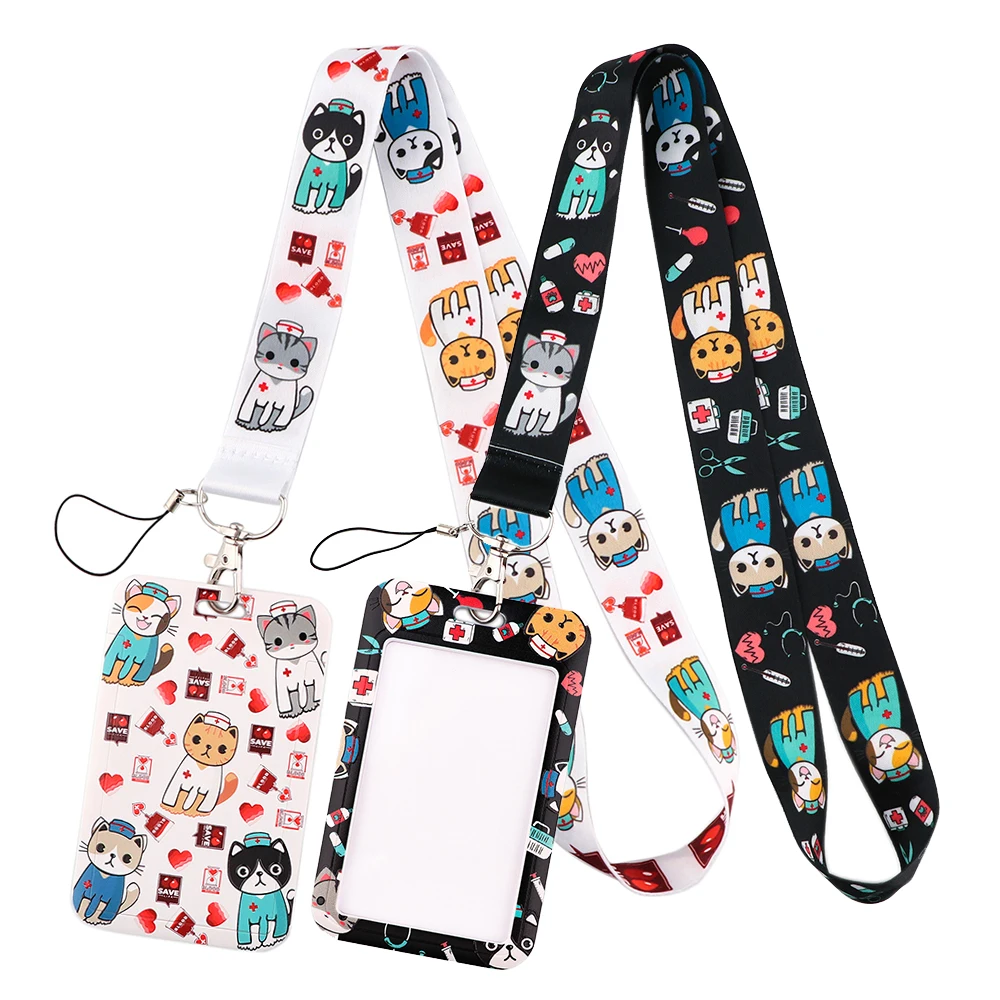 LT641 медицинский кошка доктор брелок ленты ремешки для ключей чехол для ID карты веревки Lariat симпатичный значок держатель аксессуары для медсестер