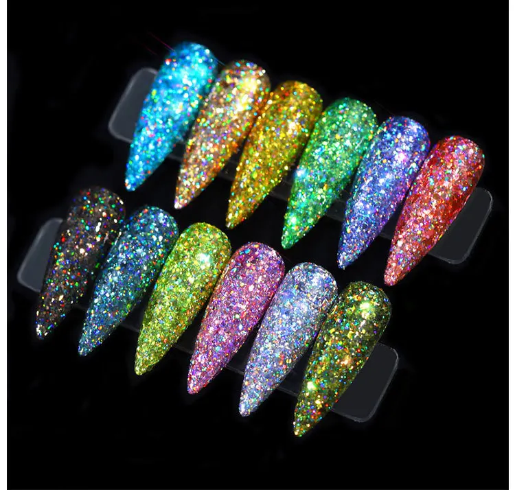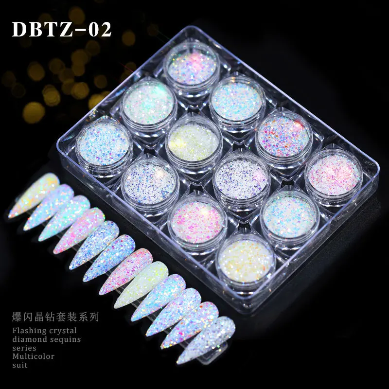 12 шт./компл. смешанный голографический блестящий для ногтей хлопья блестки Икра порошок алмаз круглый Русалка Блестки Дизайн ногтей украшения