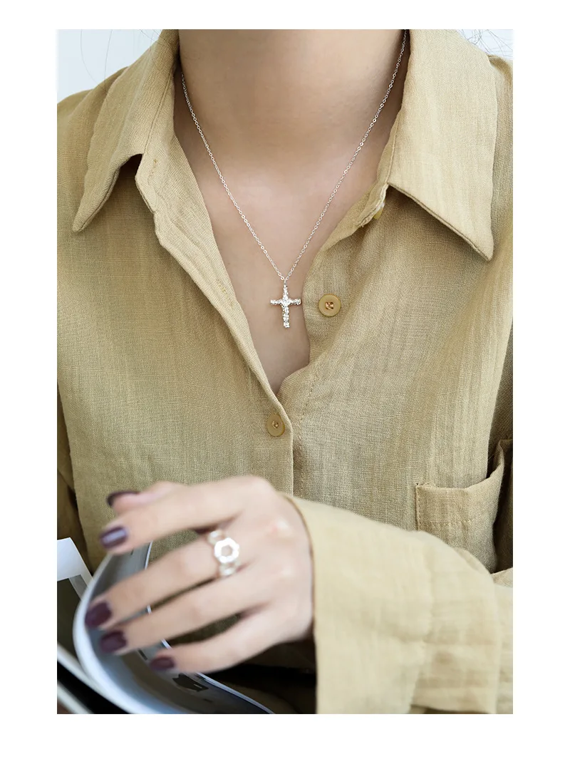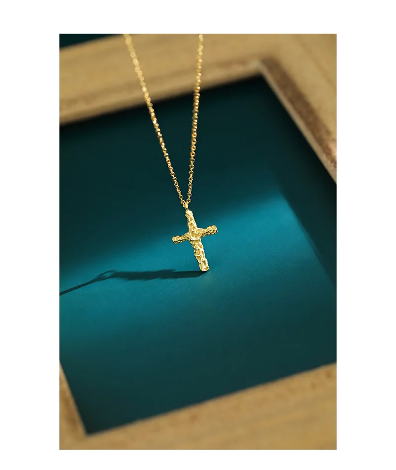 Реальные 925 пробы серебристый неправильной формы поверхности в форме Креста на цепочке длинной женские цепочек на шею в форме, модные золотые Цвет массивные ожерелья ювелирных изделий