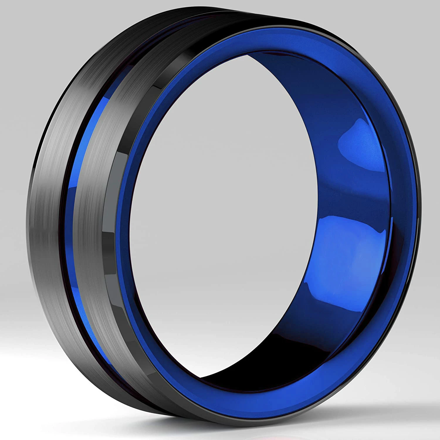 Модное мужское синее кольцо 8 мм из нержавеющей стали, Черное Матовое с синим пазом, со скошенными краями, обручальное кольцо, подарки на годовщину вечеринки