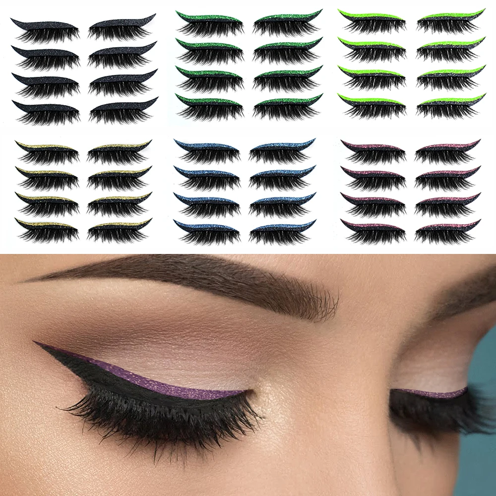 4 пары 2в1 многоразовые наклейки для подводки глаз и ресниц водостойкие долговечные для женщин и девочек вечерние аксессуары для ежедневного макияжа