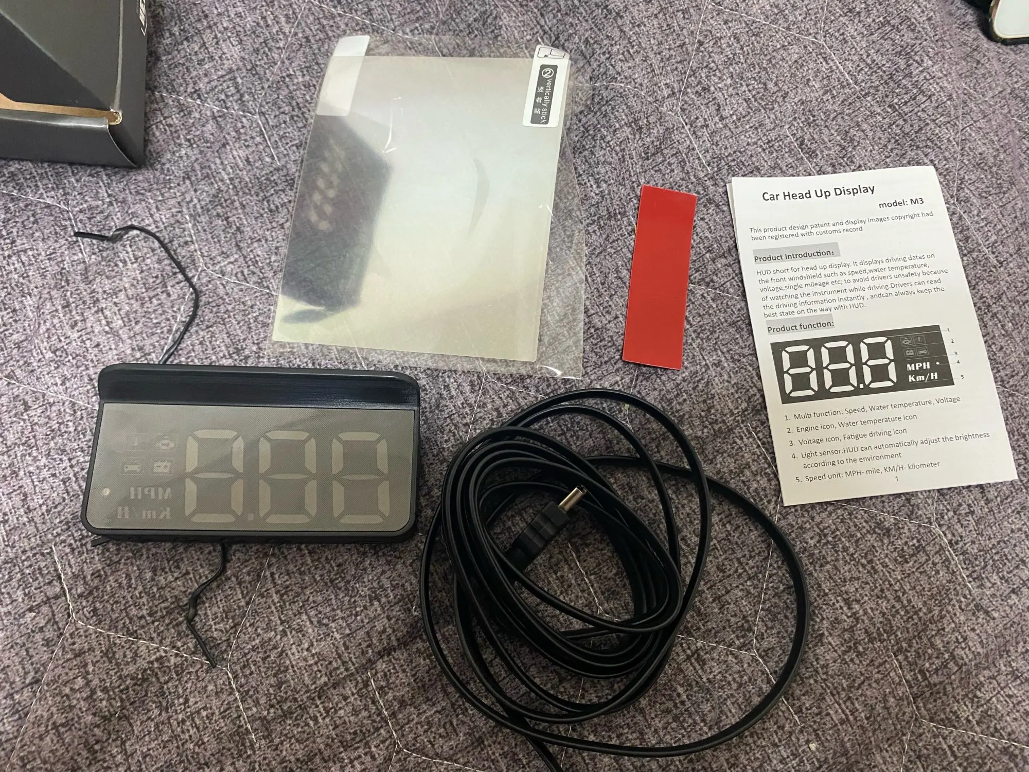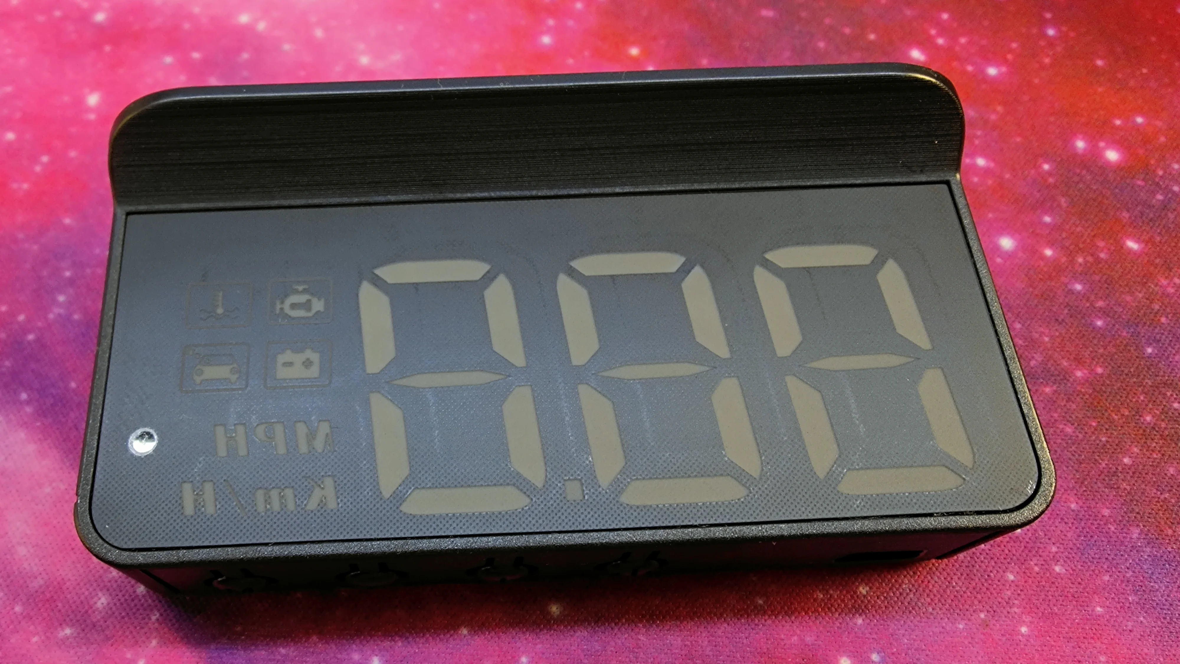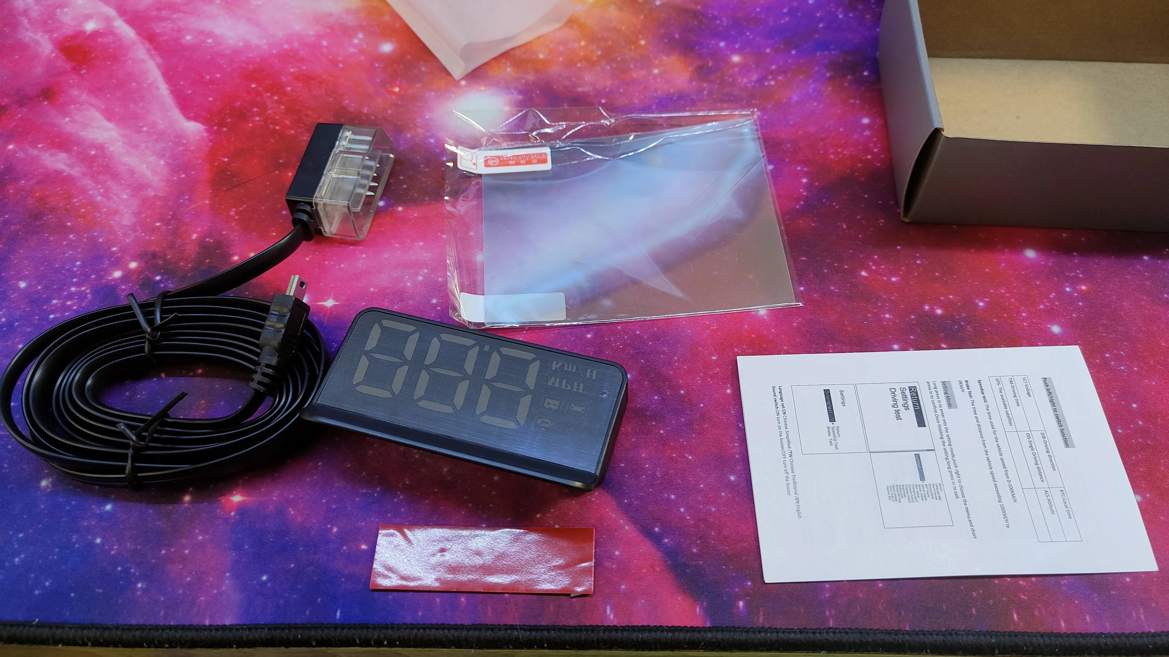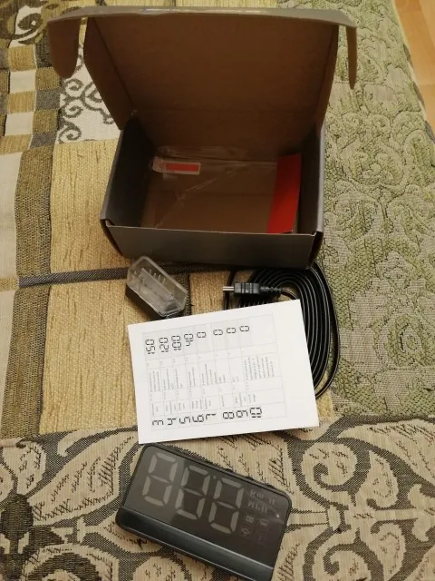 Взял на распродаже за 476 рублей, пришло быстро через СберЛогистику, но получение это что-то с чем-то. Короче, избегайте. Инструкция на английском. Сам приборчик на новой мазде СХ5 работает четко, брал чтобы показать только скорость, поэтому устраивает полностью. Показания через ODB2, соответствуют показаниям спидометра, то есть выше реальной скорости на 3 км/час. Установка легкая, плоский провод легко прячется под обшивку, сам прибор на резиновый коврик. Пленка на стекло мне не понадобилась, отображает с автоматической подстройкой яркости нормально. Козырёк прикрывает от прямого контакта с глазами. Из недочётов - кнопки со стороны стекла (но если установил раз, то и незачем больше их нажимать), провод коротковат если в авто разъём ODB в районе центральной консоли, отсутствие таких проводов в продаже. В общем, 5 и рекомендация.