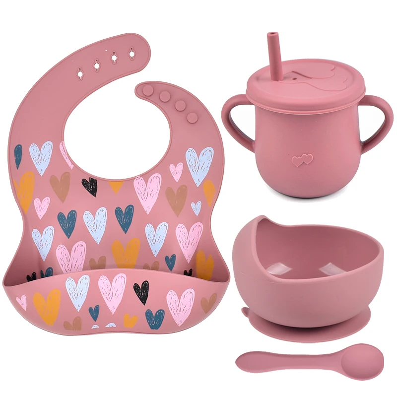 4 шт.компл. силиконовые детские нагрудники набор посуды кружка-непроливайка из термостойкого Водонепроницаемый для миски Детские столовая утварь для кормления Кухонные принадлежности