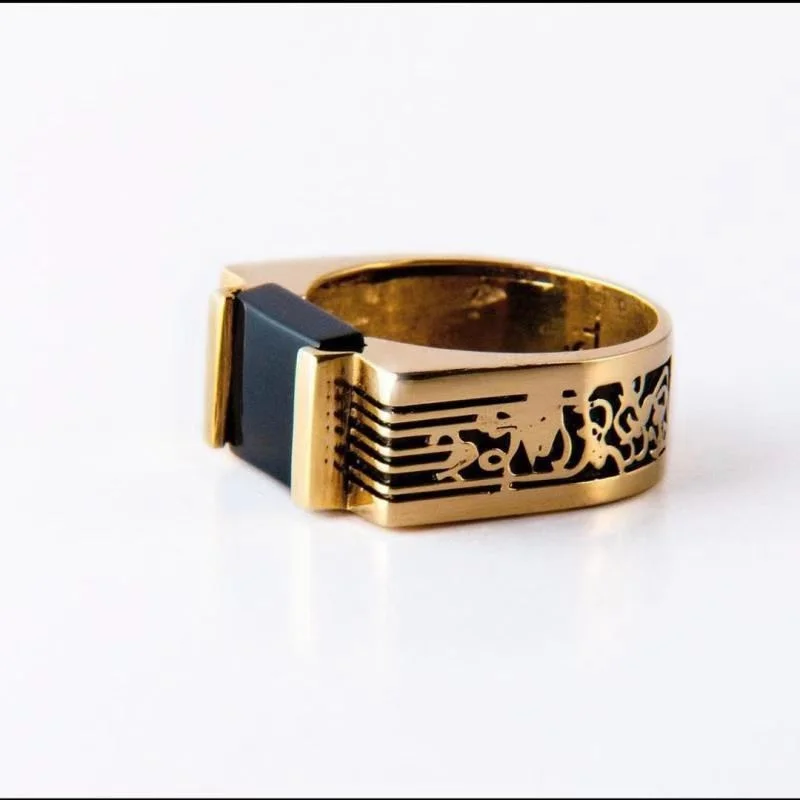 Бизнес Для мужчин Золотое кольцо черный камень кольцо с черным агатом Для Мужчин's Обручение Для мужчин t Свадебные украшения