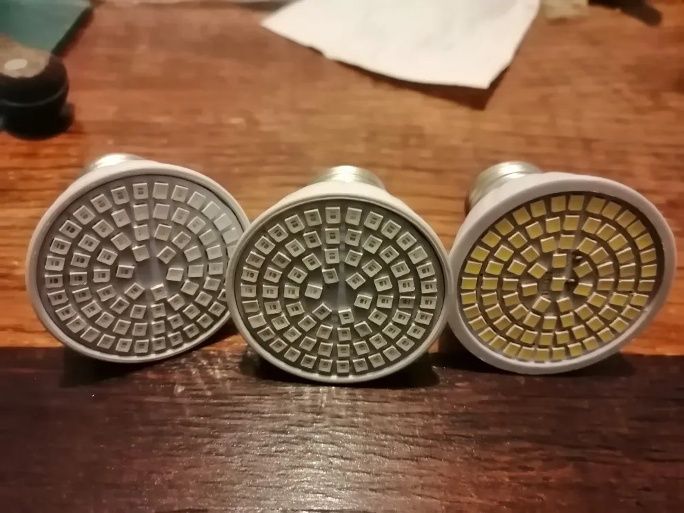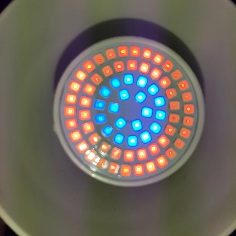 Описанию соответствуют 2 вещи: это действительно лампа, и в ней вроде даже заявленное количество светодиодов. Половина красных, и половина синих. Ни о каком полном спектре речь не идёт, не говоря о влиянии на рост растений