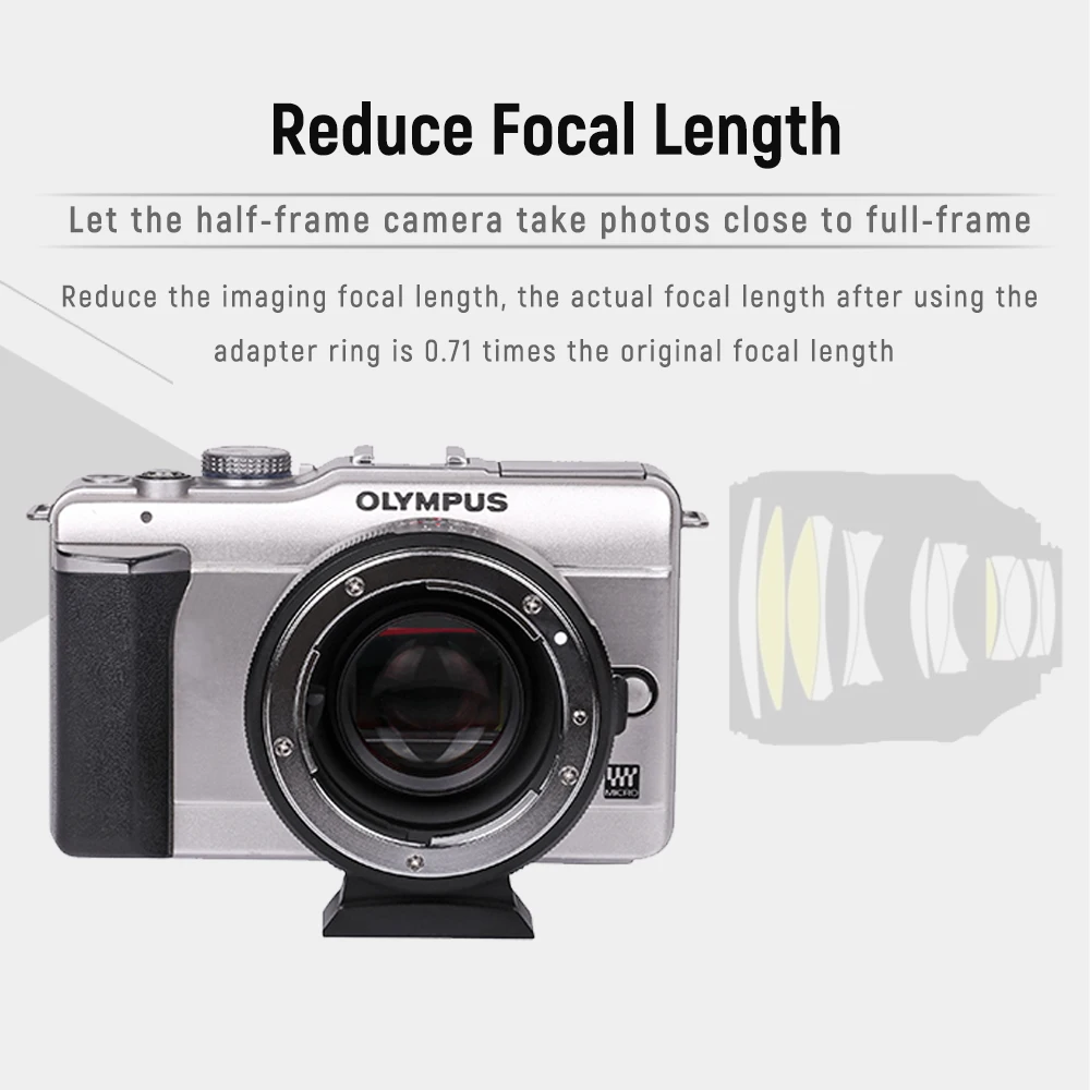 Пусть половина кадра камеры делает фотографии близко к полной рамкеУменьшить изображений фокусное расстояние, фактическое фокусное расстояние после использования переходное кольцо 0,71 раз больше, чем оригинальный фокусное расстояние