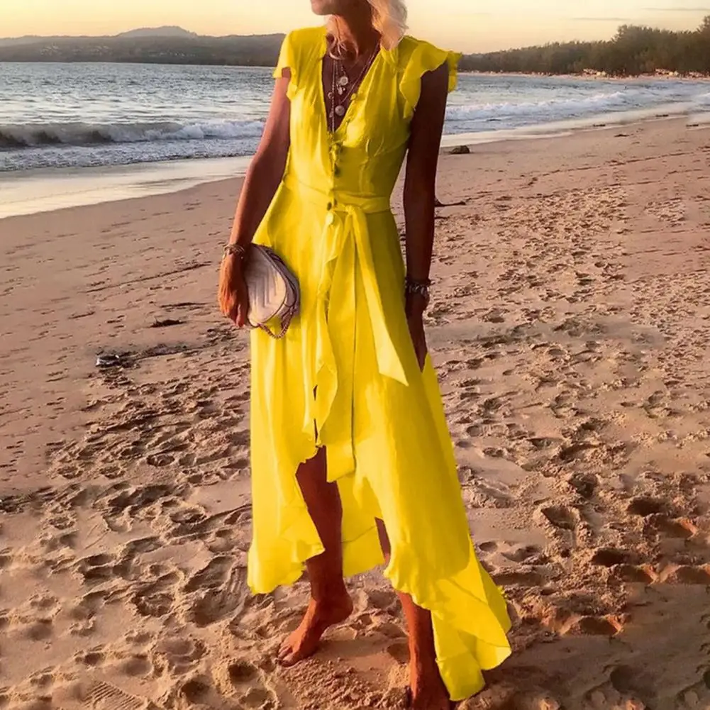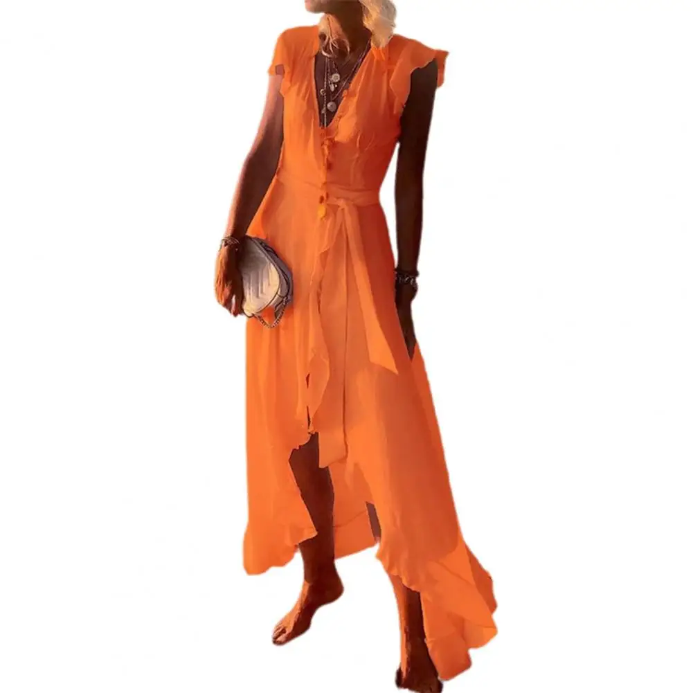 Женское платье с V-образным вырезом, однотонное длинное платье с коротким рукавом, с асимметричным подолом, для пляжа, летняя одежда, 2021, оранжевый, xxxxl