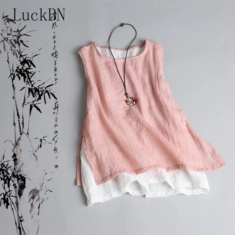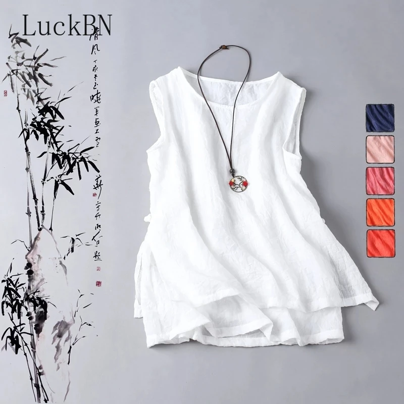 Женская Винтажная Майка без рукавов, белая повседневная майка из хлопка и льна, большие размеры, лето 2022