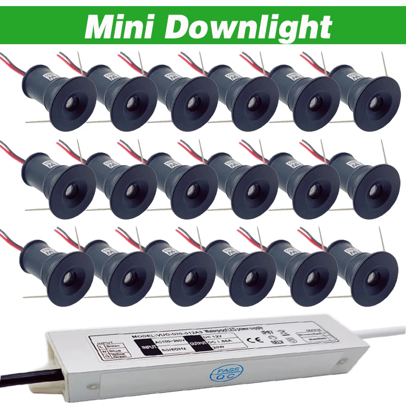 Мини светодиодный потолочный светильник IP65 1 Вт 12 В, встраиваемый потолочный Точечный светильник с трансформатором AC100-265V, черный, белый, серебристый корпус, прожектор для шкафа