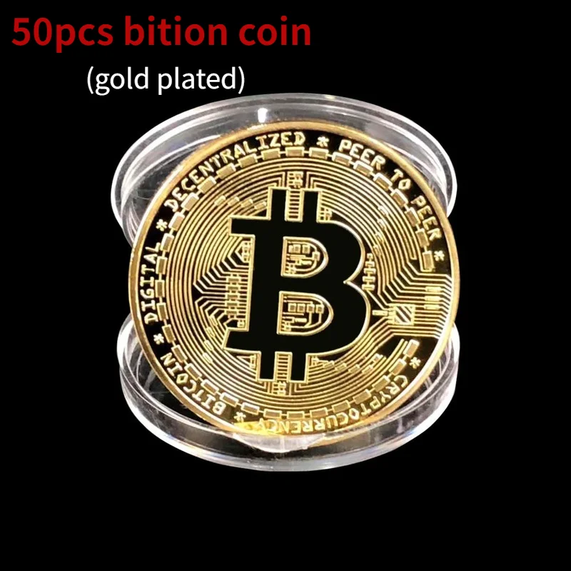 50 шт. позолоченная монета Биткоин художественный сувенир отличный подарок Коллекционная физическая металлическая монета памятная монета с акриловой коробкой
