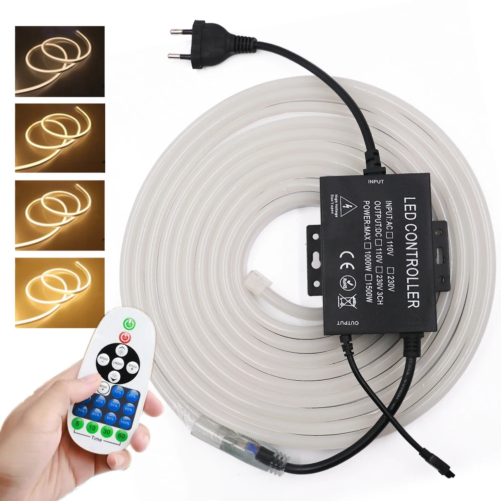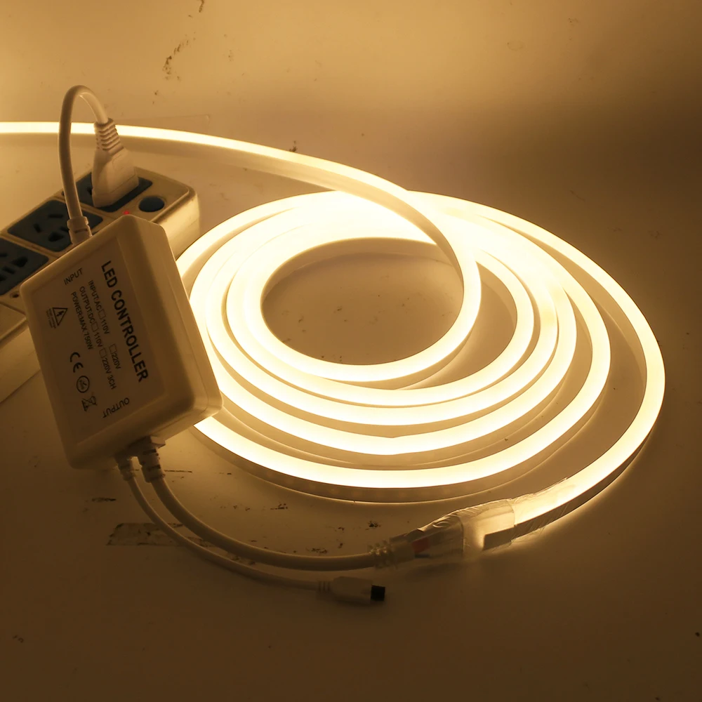 220V Flex Неоновый свет с регулируемой яркостью светодиодная полоса неоновая вывеска 2835 120 светодиодовм Водонепроницаемая неоновая лента веревка белыйтеплый белый наружное освещение