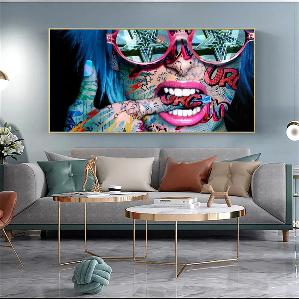 Настенная Картина на холсте с изображением уличных граффити Женщины кусающие пальцы абстрактный стиль плакаты и картина для гостиной домашний декор