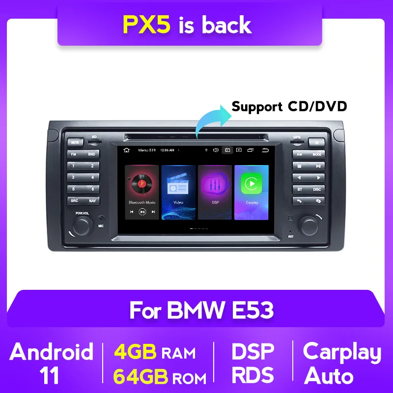 Автомобильный DVD-навигатор RDS DSP, Android 11, 4 Гб ОЗУ, 64 Гб ПЗУ, GPS, для BMW X5, E53, BMW E39, стерео, 5 серий, видео, аудио, 4G, LTEW, Carplay, SWC
